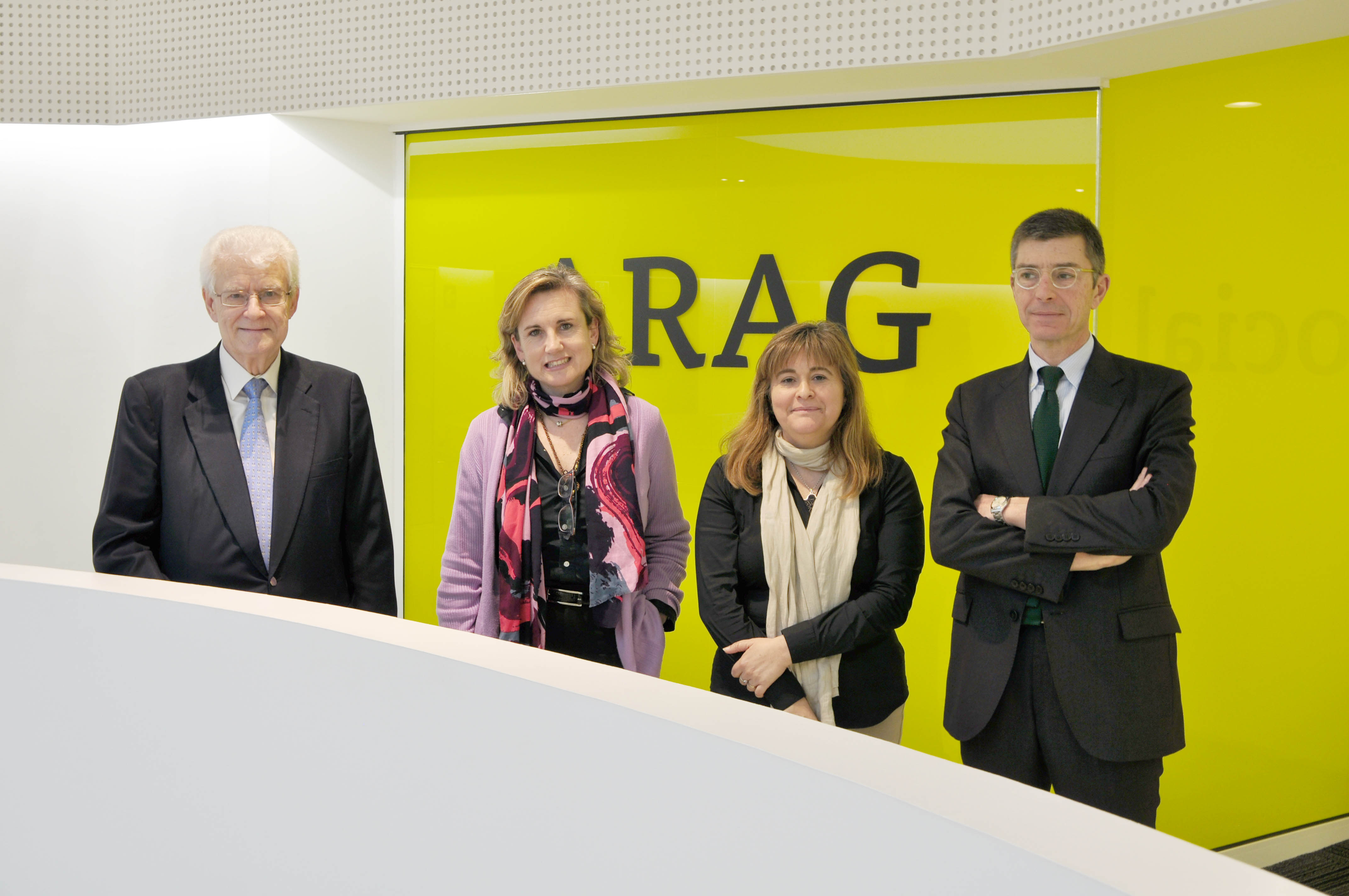 Barcelona, 15 de marzo de 2017.- ARAG publicará, por tercer año consecutivo, los “Cuadernos de Dirección Aseguradora” de los alumnos del Máster de la promoción 2016/2017 de la Universidad de Barcelona (UB). La compañía, especializada en seguros de Defensa Jurídica y Asistencia en Viaje, y la Universidad han renovado este convenio de colaboración en las oficinas de la aseguradora en Barcelona. El CEO de ARAG SE Sucursal en España y Member of GEC (Group Executive Comittee), Marià Rigau, la Directora de la Asesoría Jurídica de ARAG, María Belén Pose, y José Luis Pérez Torres y Mercedes Ayuso, fundador y directora del Máster en Dirección de Entidades Aseguradoras de la Universidad de Barcelona, han participado en la firma de este acuerdo.
